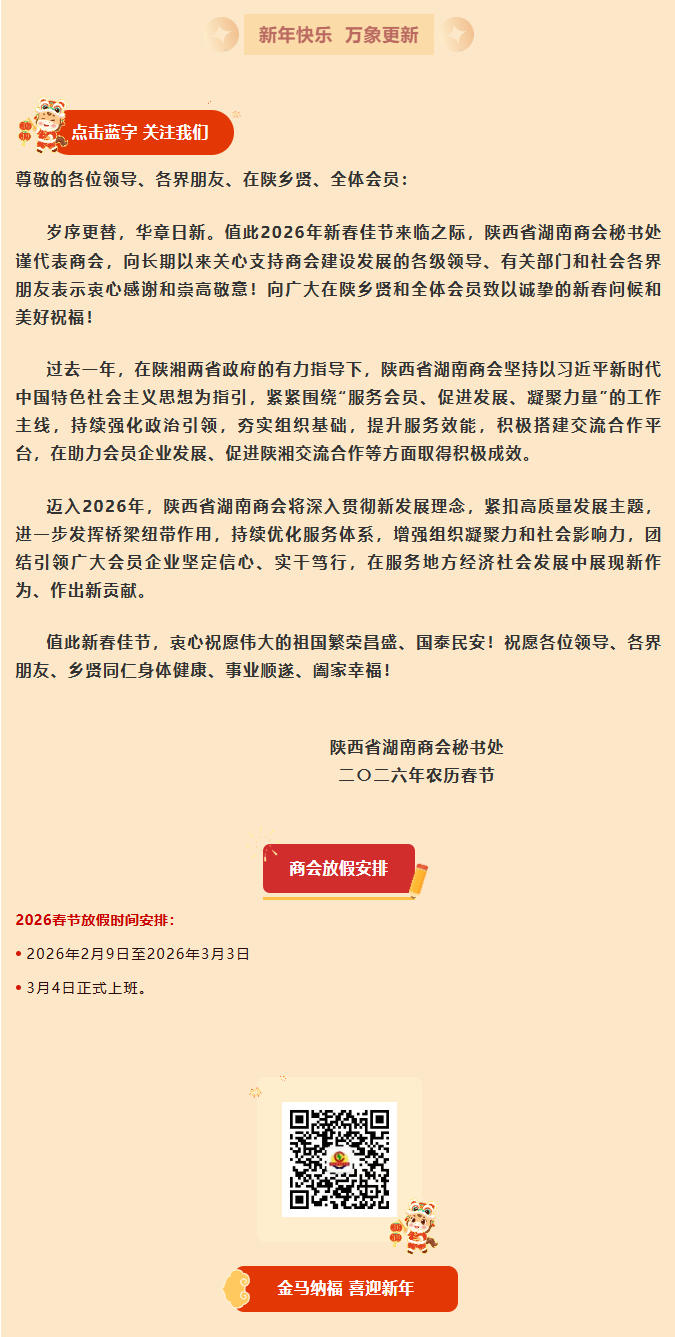 【新春祝福】陕西省湖南商会恭祝大家新春快乐!