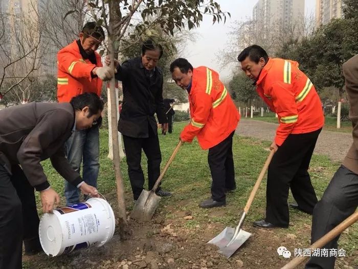 谢成波会长表示,对这次公益植树活动提供平台的西安市绿化养护管理处表示了感谢。他表示,在西安市正在努力建设美丽西安、品质西安,正在创建森林城市、花园城市,作为在陕湘企有责任,更应该有担当,把所居住的城市建设的宜商宜居,同时号召在陕湖南企业家积极参与绿化祖国、美化环境的公益事业。