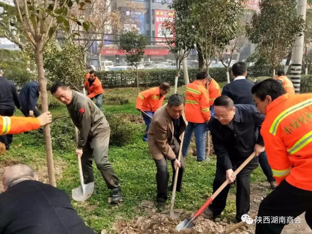 3月11日上午陕西省湖南商会组织开展了"告别城市的喧嚣,投入绿色的怀抱"为主题的爱心公益植树活动。植树活动在玉祥门外大庆路林带内展开,此次活动,是由商会组织会员单位为公路中间林带里种下一棵棵爱心树。西安市绿化养护管理处张军利处长,董金贵副处长陪同在陕原省委常委、军区司令员陈时宝将军,原省军区政委林淼鑫将军,原省人大岳松华秘书长,原咸阳军分区王相舜政委,原省监狱管理局刘廷启局长等,商会会长谢成波、常务副会长赵斌、李毅、刘旭峰,副监事长熊晓春、副会长谭建础、邓国金、肖永定、刘常森、彭卫华、刘勇等理事会员共40余人参加了此次公益植树活动,这次植树活动中科拓达农业科技有限公司董事长、商会常务副会长李毅博士无偿赞助十袋化肥,为我们这次植绿活动解决了后顾之忧,感谢李博士的倾情付出!