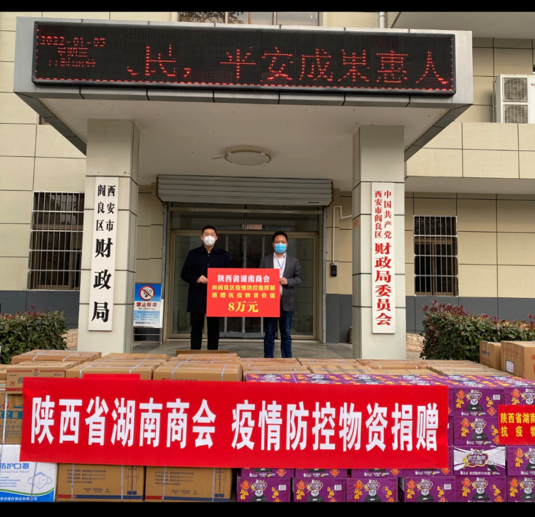 1月5 日上午,商会会长谢成波、副会长刘勇等前往阎良区捐赠防疫物资。中共阎良区委常委、统战部部长潘焕乔,阎良区人民政府副区长张红花出席捐赠仪式。