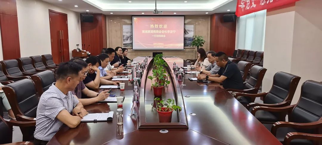 2022年5月6日下午,柬埔寨王国湖南总商会创始会长&名誉会长、侨商总会名誉会长李波宁先生一行来访商会交流座谈,我会会长谢成波、轮值会长刘勇、副会长谢映国、肖建伟、肖建华,理事范方华、彭玲珑,副秘书长杨思明等热情接待。