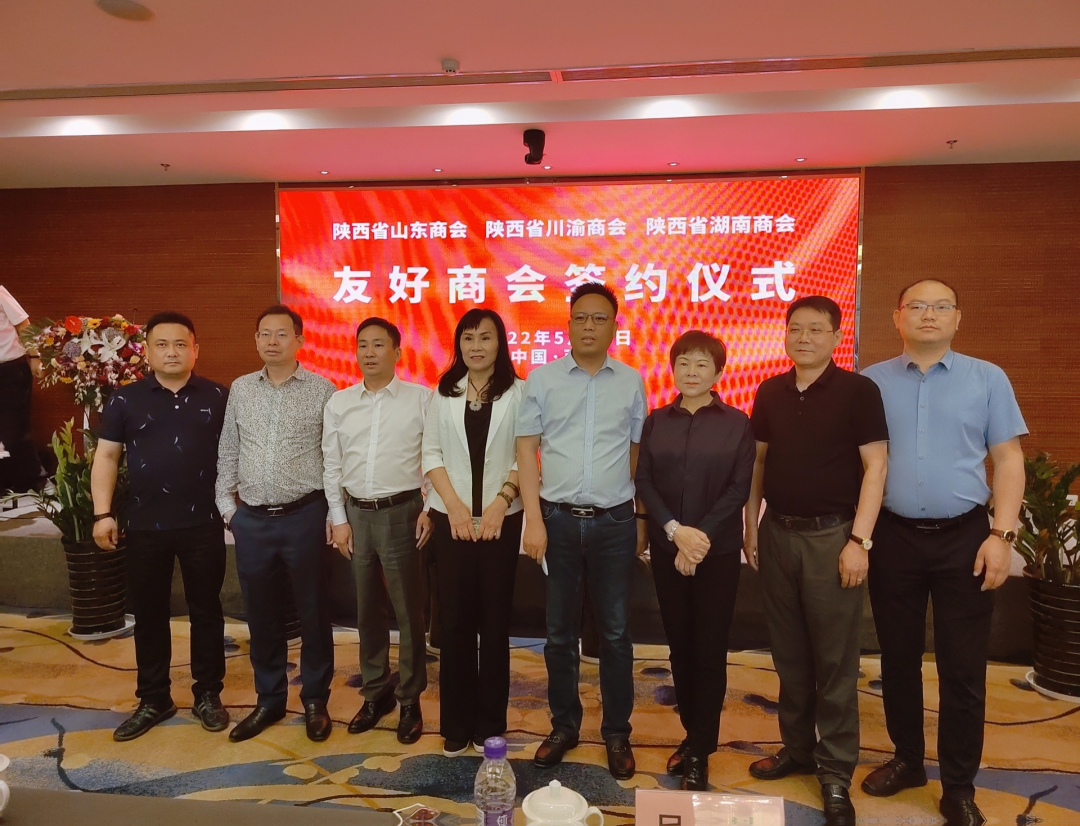为进一步加强友好商会的交流合作,增进双方友谊,积极推动商会的建设与发展,2022年5月18日下午,在天骊君廷大酒店会议厅,陕西省山东商会分别与陕西省川渝商会、陕西省湖南商会举行缔结友好商会签约仪式。陕西省省委统战部副部长、省工商联党组书记、常务副主席吴铁出席仪式,陕西省山东商会党支部书记、会长孙忠宝,陕西省川渝商会会长陈高志、陕西省湖南商会会长谢成波、党支部书记易建强、常务副会长赵斌、副会长刘勇、胡英杰、李华斌,秘书长王湘菊、理事黄文辉等50余人参加了此次会议。本次会议由陕西省山东商会秘书长苏翔主持。