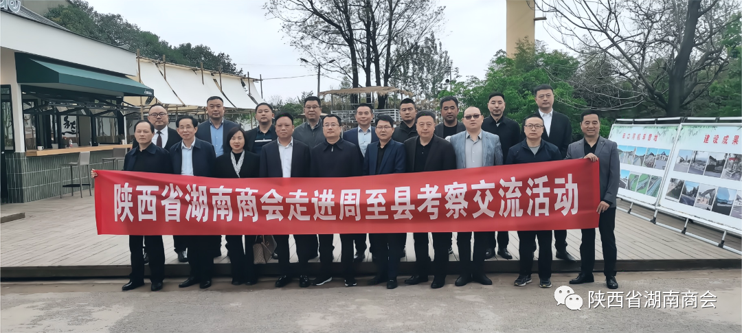 4月14日上午,由西安市工商联牵头、陕西省湖南商会会长谢成波带队,党支部书记易建强、监事长潘雨平、常务副会长刘敏晴、副会长彭煜、谢映国、陈银华、黄满雄、宁静、颜健,理事黄文辉、谢运,会员游志刚、副秘书长杨思明等一行赴周至县参观考察。西安市工商联副主席刘宝、经济处处长倪氩亮等陪同参观考察。周至县委常委、副县长周训良,县委常委、县委统战部长陶文智,县委统战部副部长、县工商联党组书记胡晓涵,县工商联主席靳二伟等参加考察交流活动。