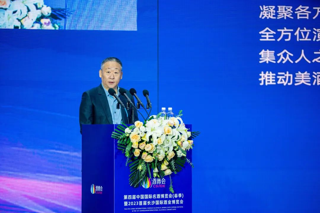 中国酒业协会理事长宋书玉以《“湘”约“湘”逢,“湘”会“湘”聚》为主题,为开幕式致辞。在致辞中,宋书玉理事长指出,酒业格局正在发生深度变化,高质量现代化发展已经成为产业的主旋律。长沙是湖湘灿烂酒文化的杰出代表,也是湘酒高质量发展的重要窗口,长沙酒博会应立足湖南,面向全球,全力推动国内外名酒交流,共助中国酒业高质量发展。