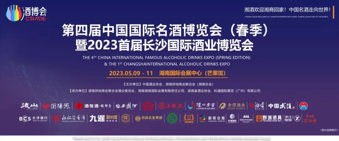五月举杯,美酒“湘”约!5月9日到11日,由湖南省商务厅、长沙市人民政府、常德市人民政府、邵阳市人民政府、湘潭市人民政府、湘西土家族苗族自治州人民政府共同支持,中国酒业协会、湖南异地商会联合会(湘商总会)主办的第四届中国国际名酒博览会(春季)暨2023首届长沙国际酒业博览会(以下简称“酒博会”)在湖南国际会展中心(芒果馆)举行。
