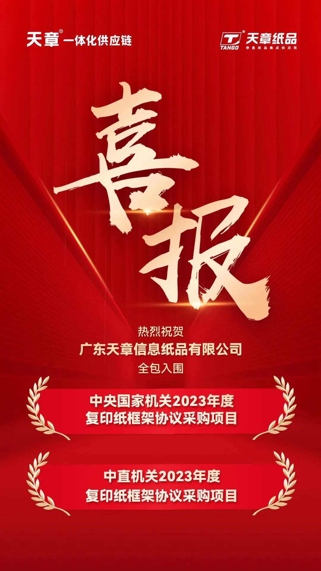 本月,广东天章信息纸品有限公司复印纸连续入围中央国家机关、中直机关2023年度复印纸框架协议采购项目!