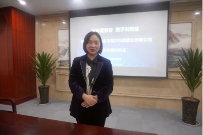 陕西梦云飞教育科技有限公司董事长宁静与贵州金沙古酒酒业有限公司创新事业部总经理唐炜代表双方在商会领导及酒业公司领导的见证下签订合作协议,本次合作陕西省湖南商会携手会员企业共计投资200万元。
